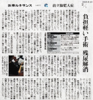 読売新聞の前立腺肥大症の特集に桑原医師が掲載されました。